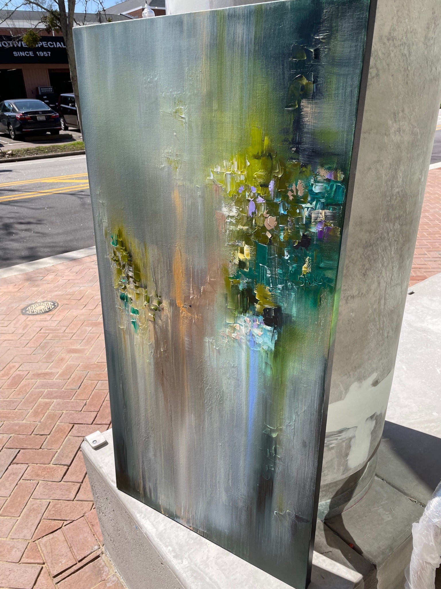 Base layers are acrylic covered with oil paint throughout. I use a palette knife for painting the majority of all of my pieces. Canvas is stretched cotton over wood. Edges are painted to compliment the art.