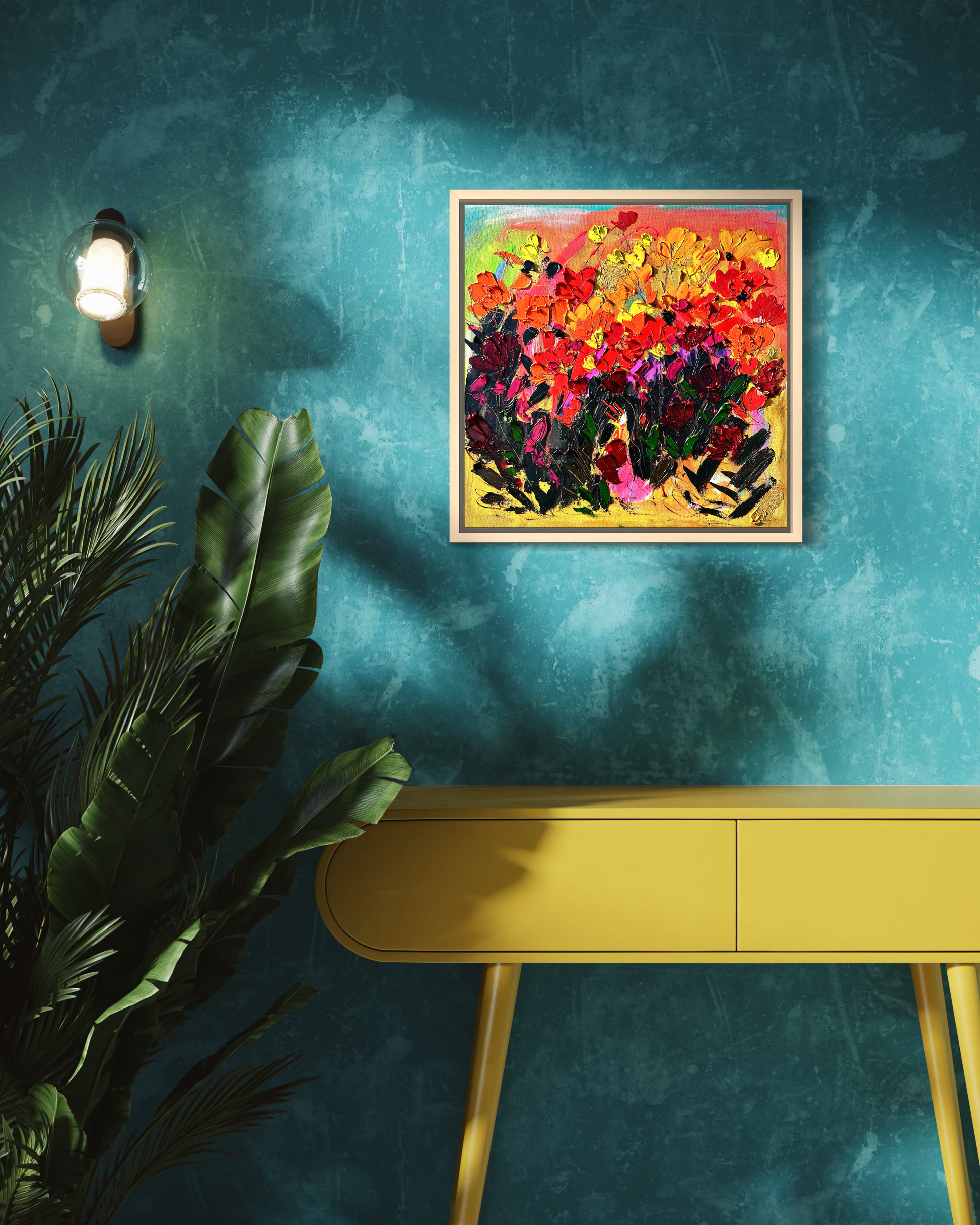 20x20 oil on canvas. This piece does not come with a frame, please contact artbyshalimar@me.com if interested in a handmade wooden frame.