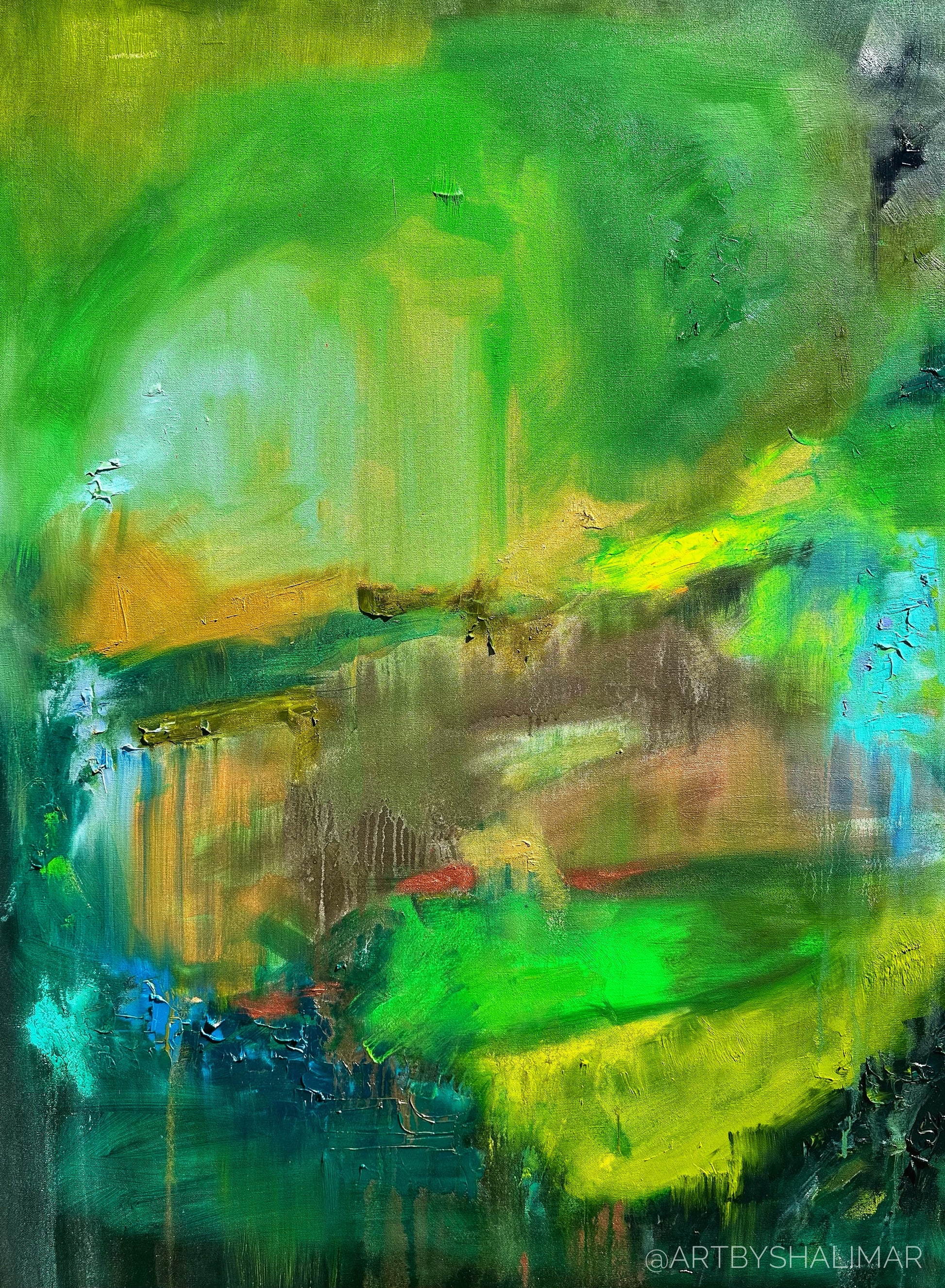 Carolina Creek is one of 10 pieces in my Spring exhibit collection called Neon Trees. It is a 36 x 48 oil and canvas.
