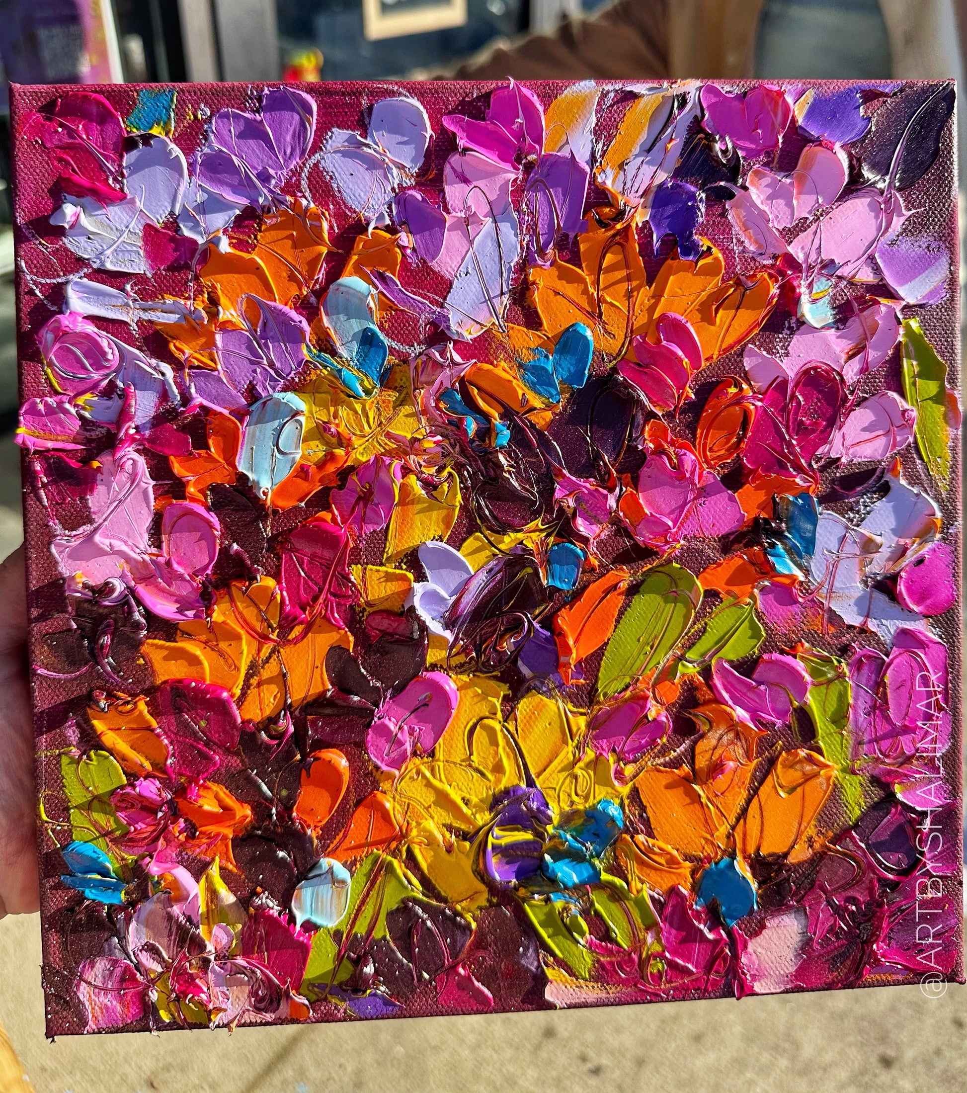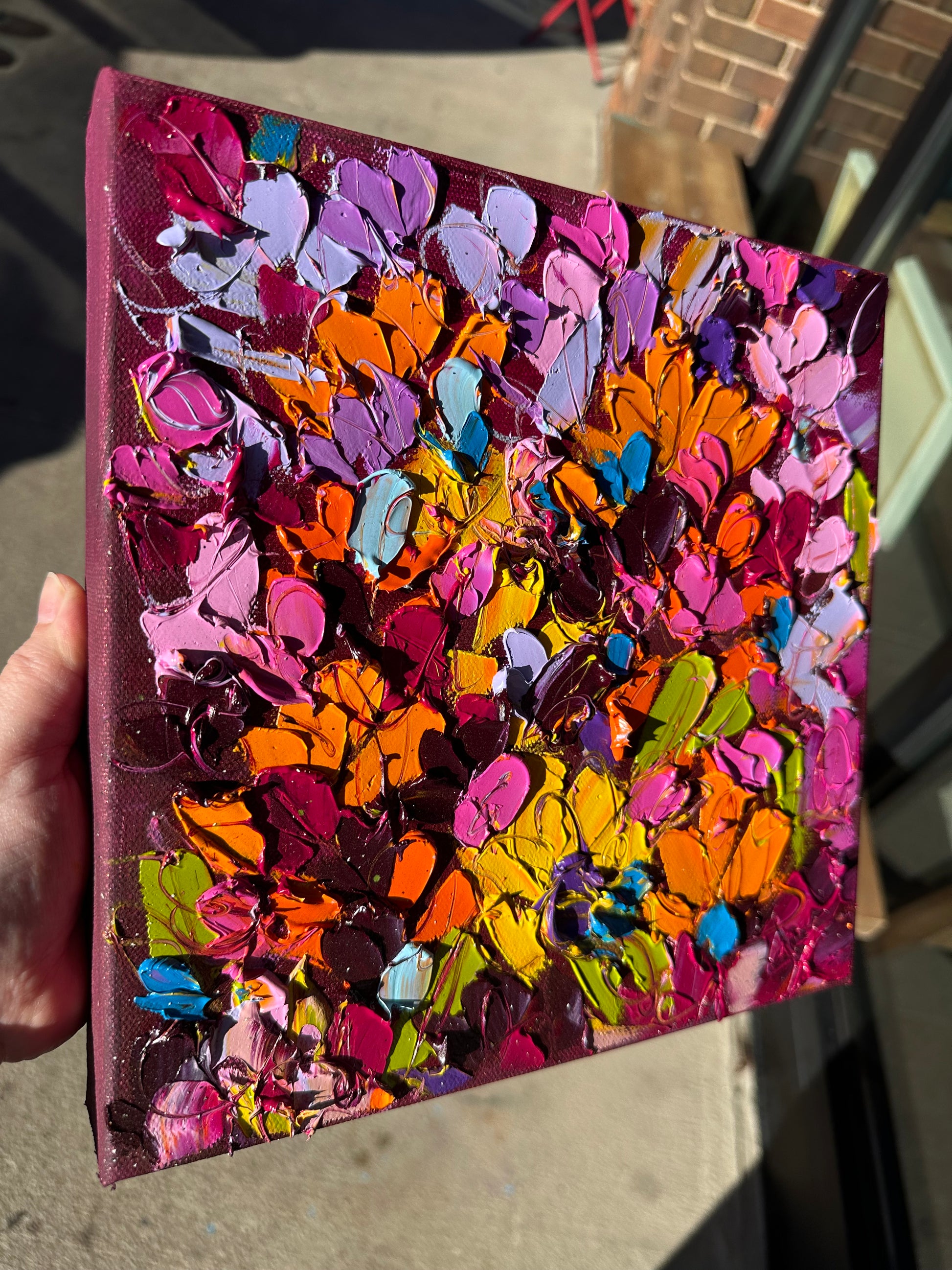 10x10 oil on canvas. Ready for pickup in 1-2 weeks. Will notify you once ready. Thank you!