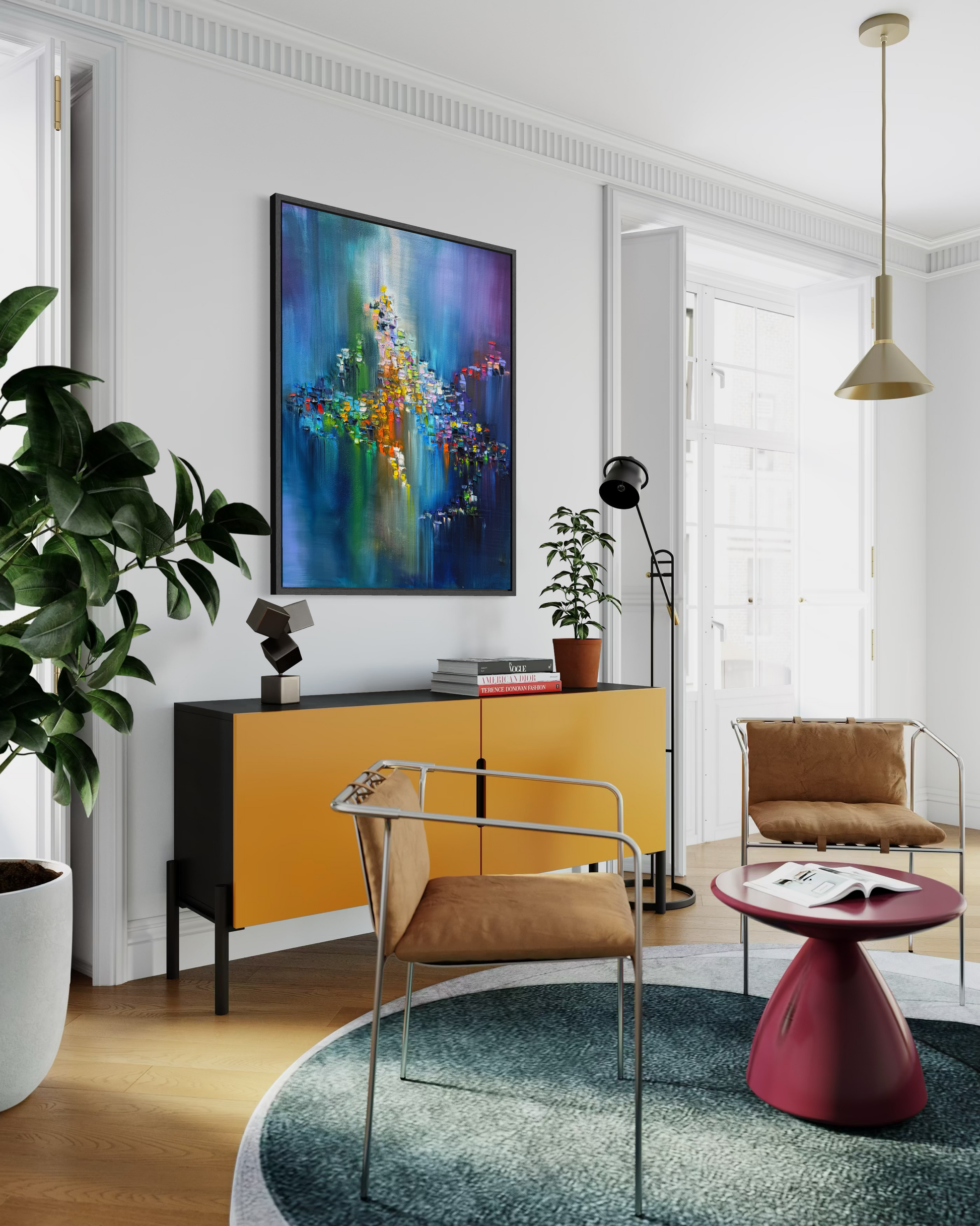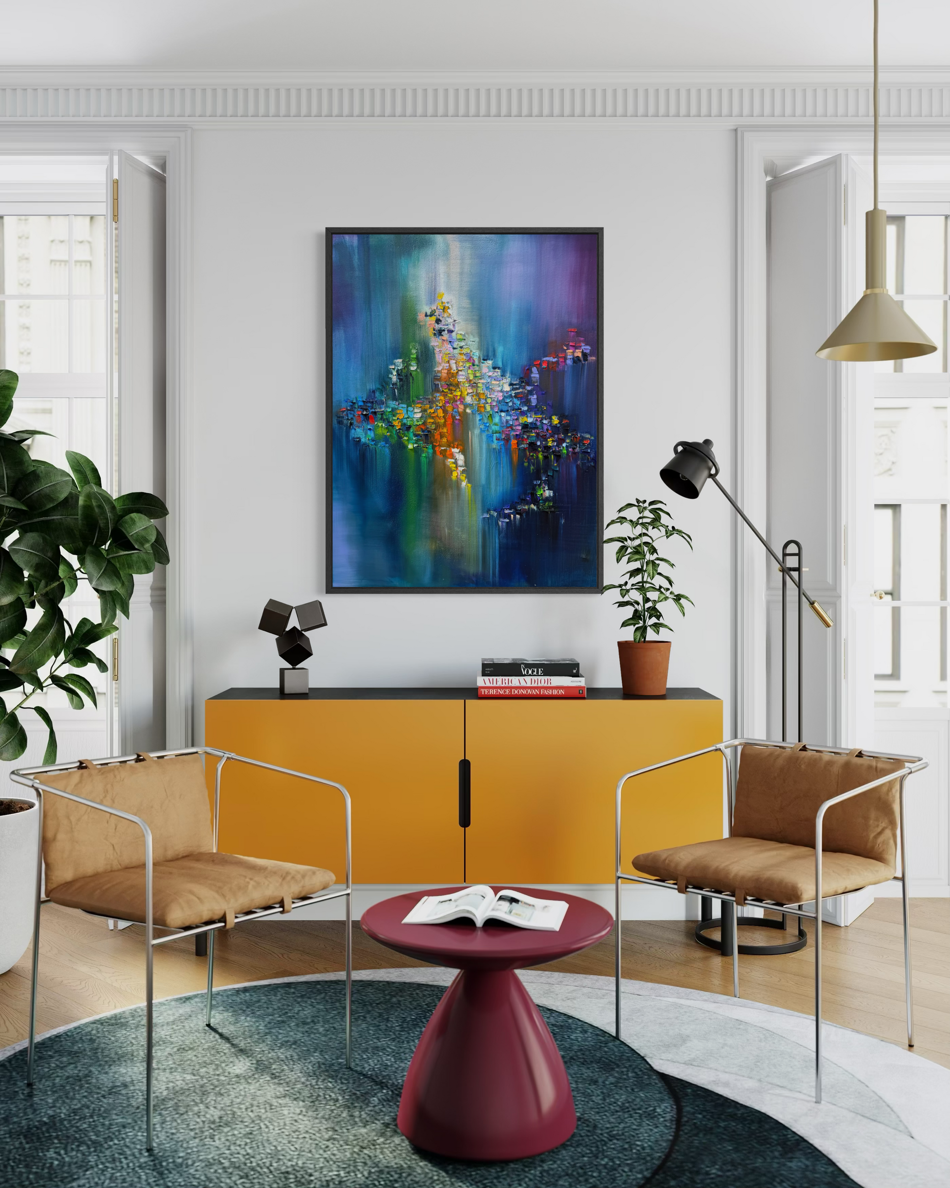 Inspired by the idea of bringing energy into your world with bolt of color and contrasting colors that collide against a deep dark background.