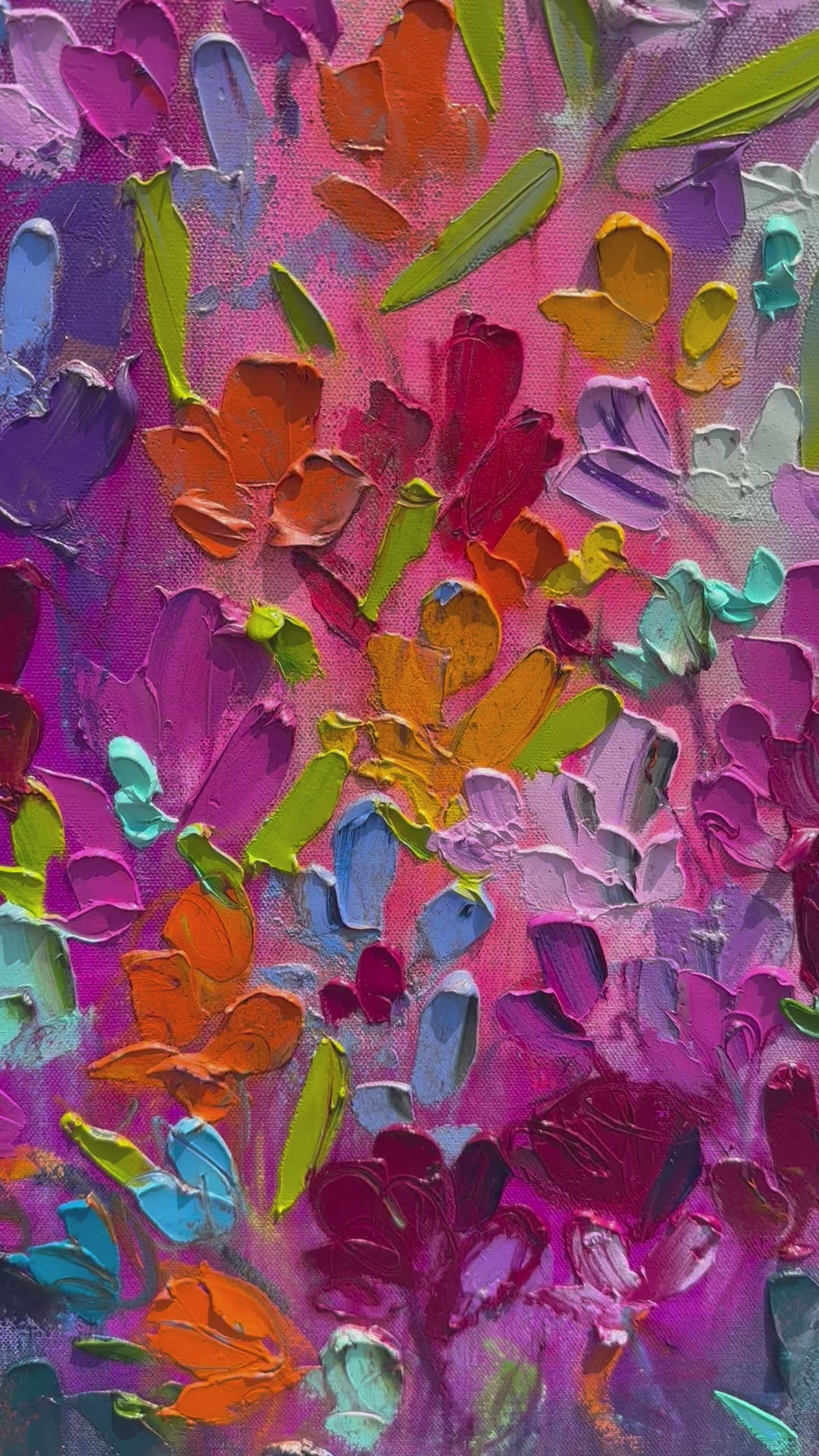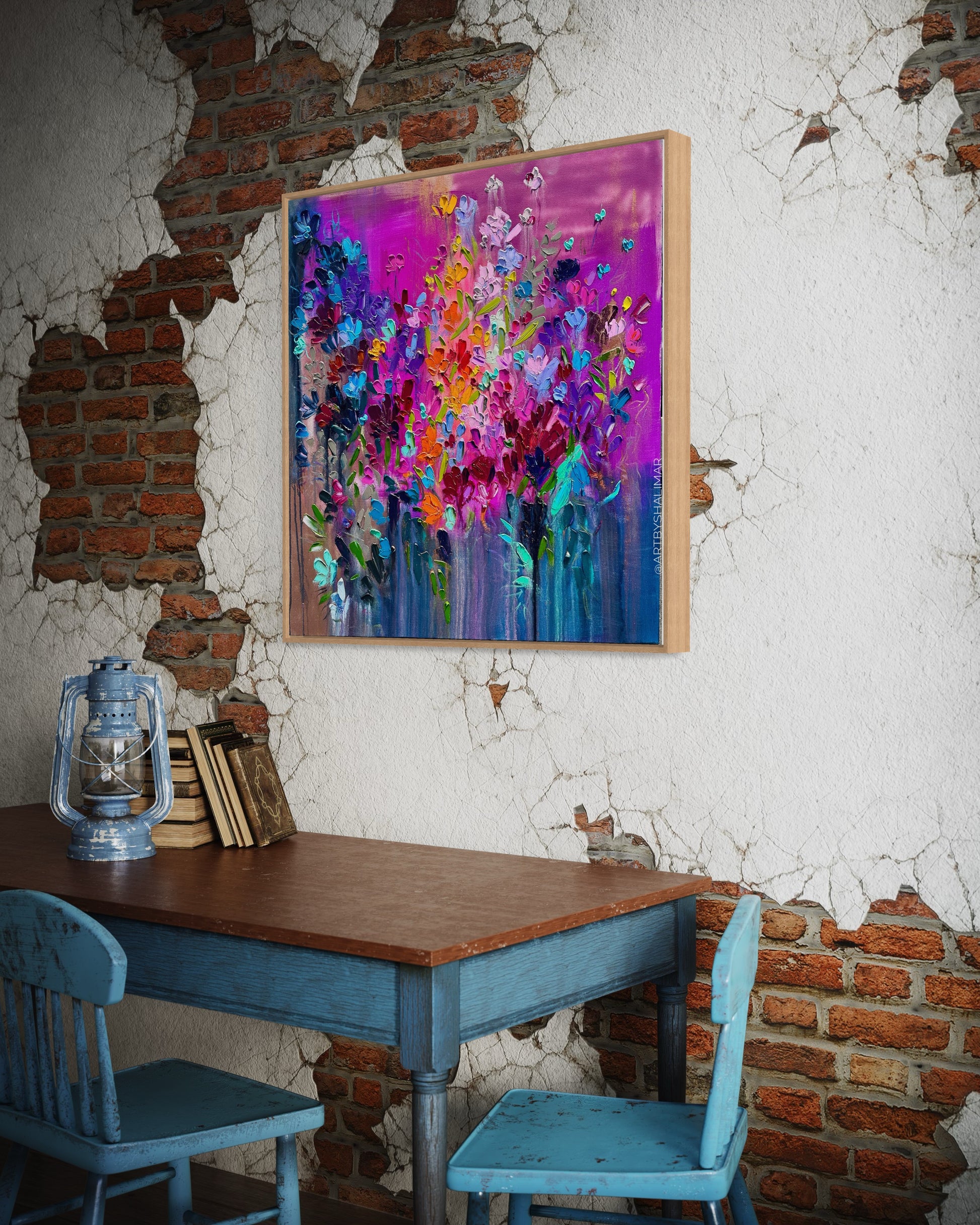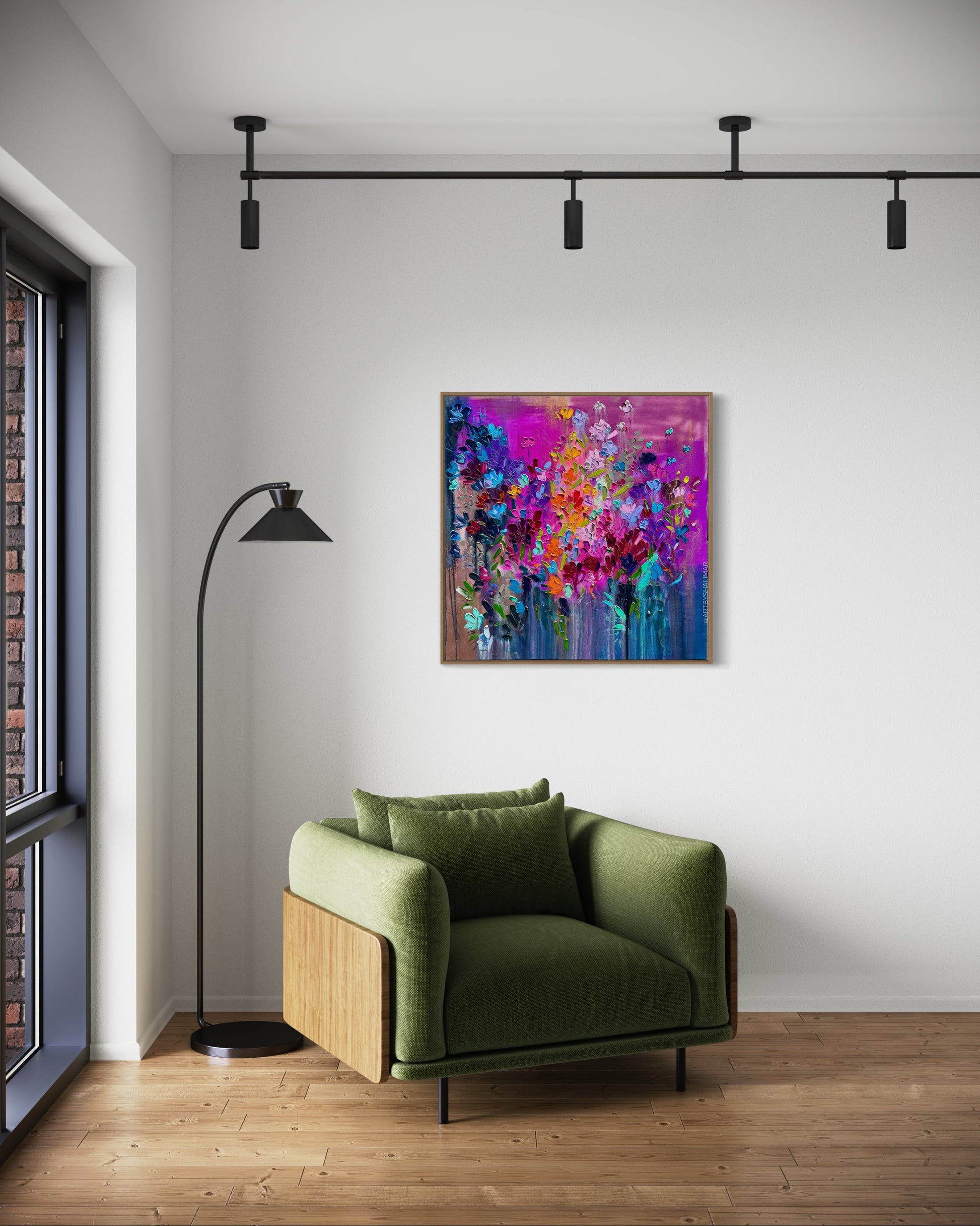 This painting is inspired by an idea of floral fireworks meant to bring energy and inspiration to your space.