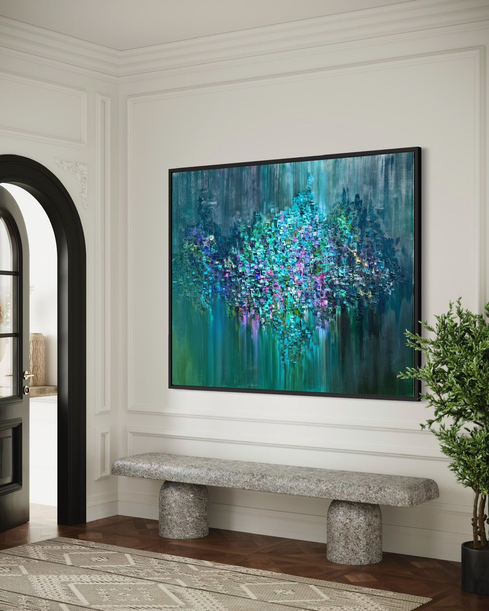 Shalimar Waffa is a nationally recognized artist whose signature Pastelo style — a technique of building rich, thick layers of oil directly onto canvas with a palette knife that transforms raw emotion into timeless work, created to be passed down and treasured for generations.