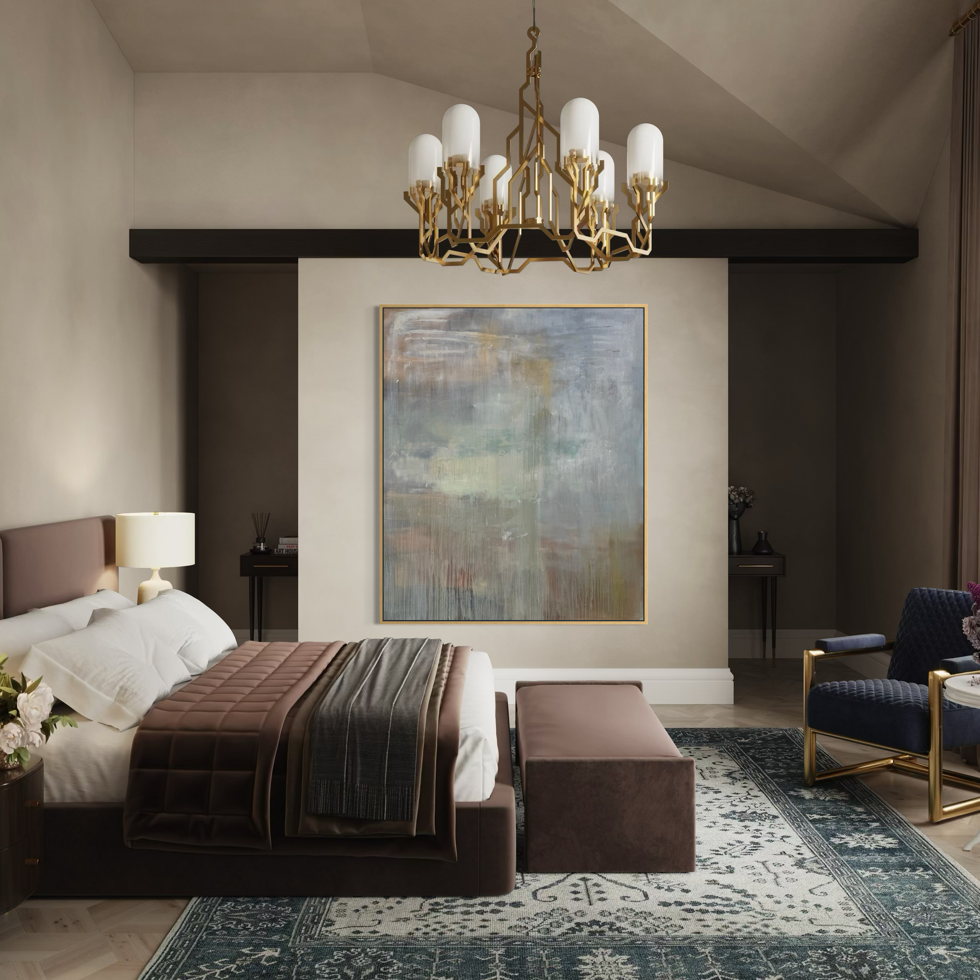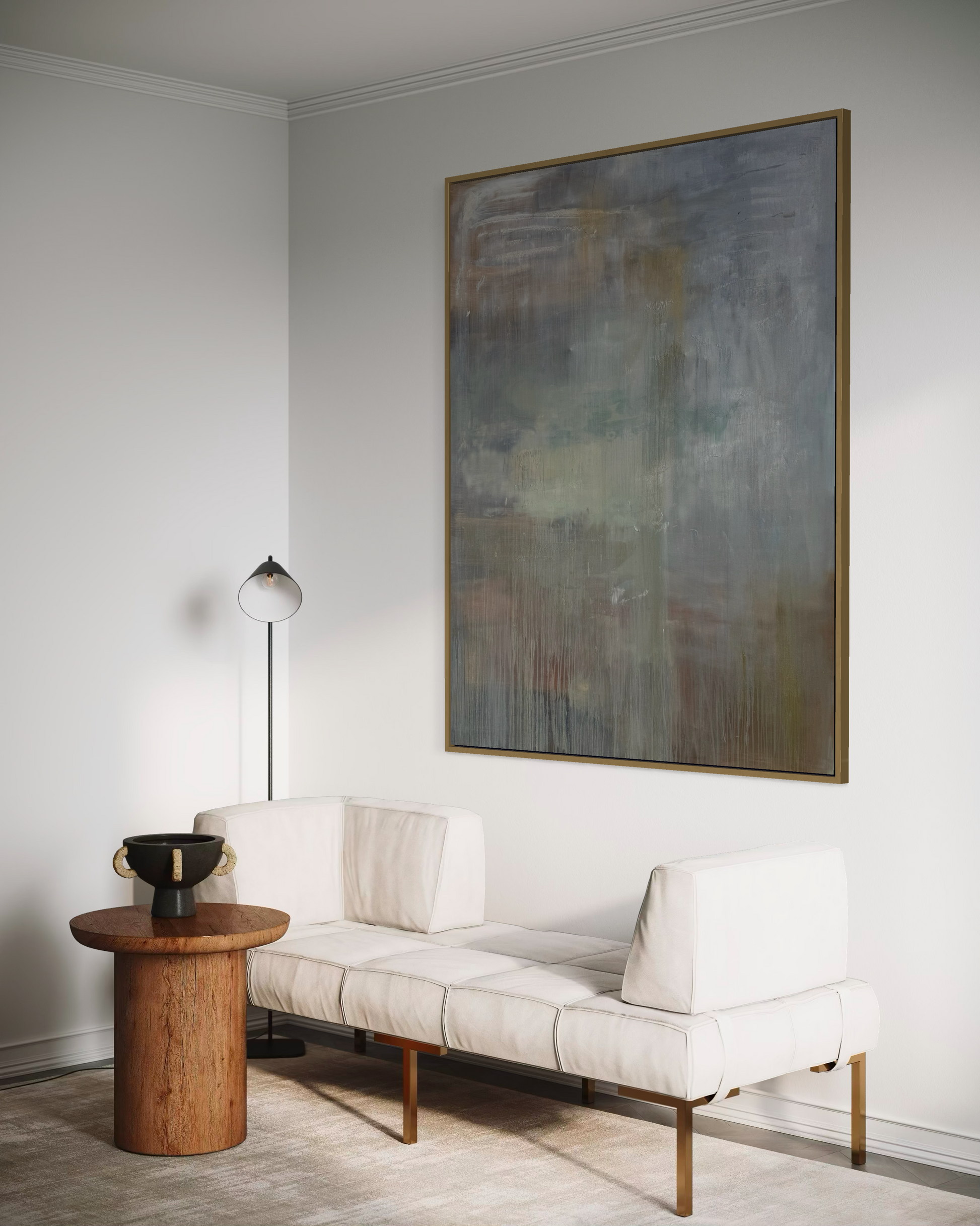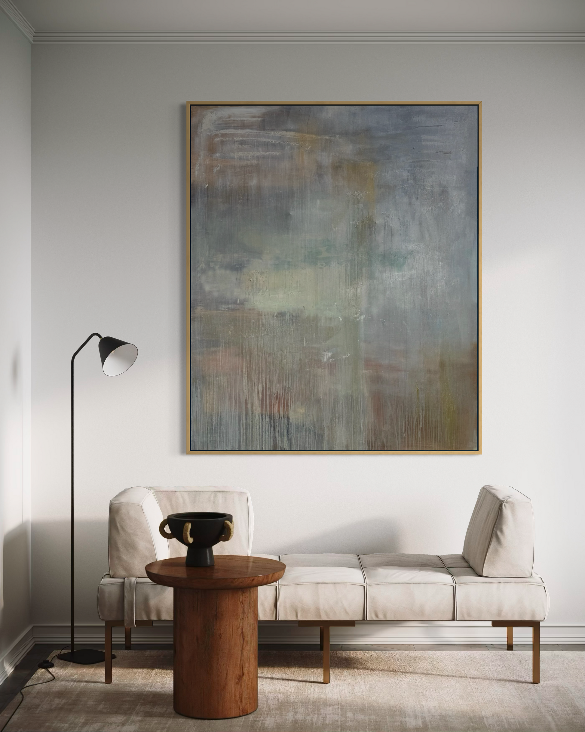 Inspired by stillness itself. This piece has warm neutrals and soft whites with whispers of gold flowing together in a way that feels effortless and calming, bringing a sense of peace into any space it inhabits.